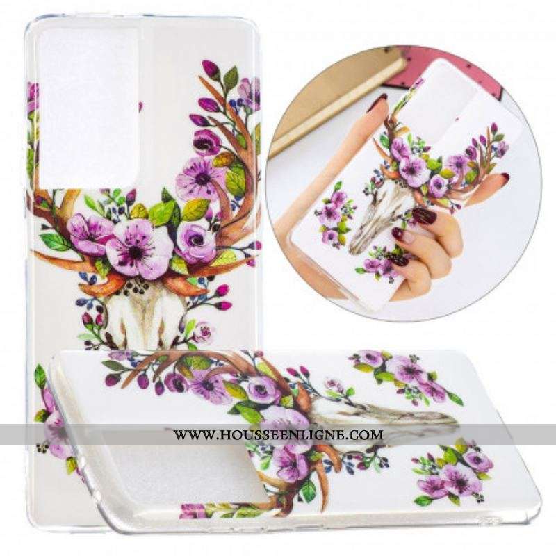 Coque Samsung Galaxy S21 Ultra 5G Wapiti Fleuri Fluorescente
