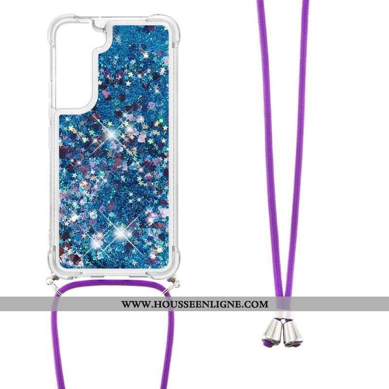 Coque Samsung Galaxy S22 Plus 5G Paillettes avec Cordon