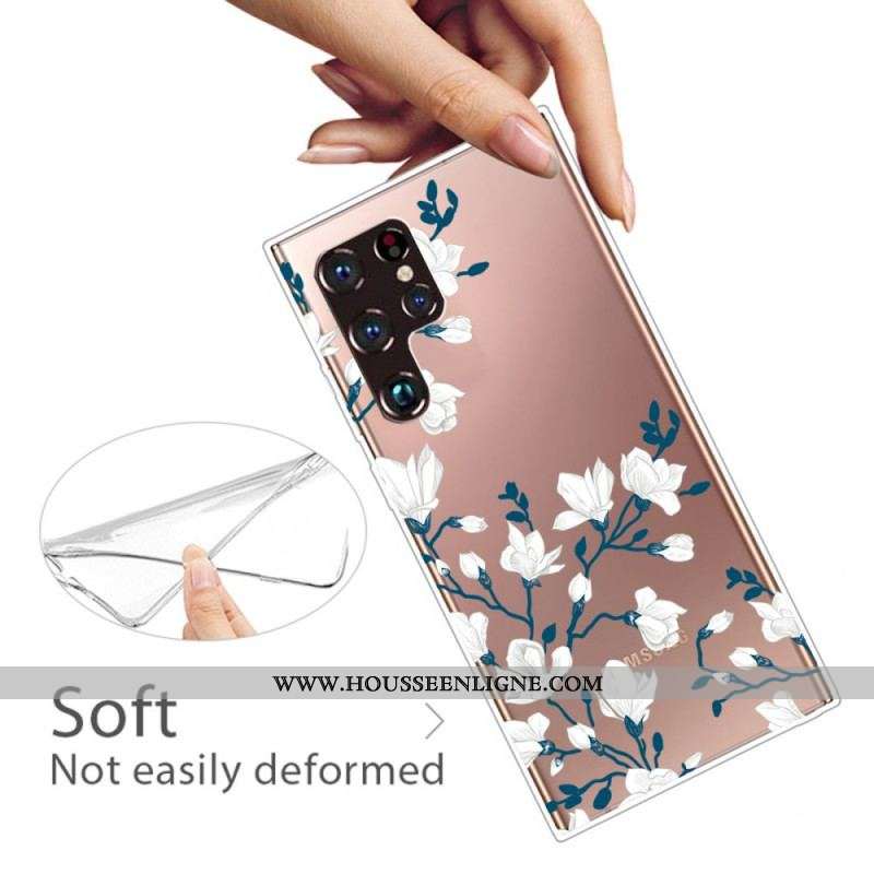 Coque Samsung Galaxy S22 Ultra 5G Transparente Fleurs Blanches