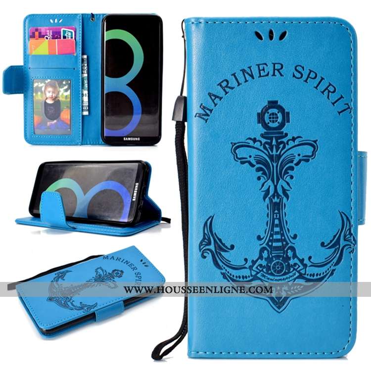 Coque Samsung Galaxy S8 Cuir Fluide Doux Étui Téléphone Portable Protection Tout Compris Étoile Bleu