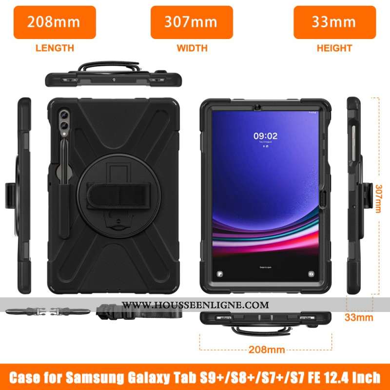Coque Samsung Galaxy Tab S9 FE Plus / S9 Plus / S8 Plus / S7 Plus Sangle et Support