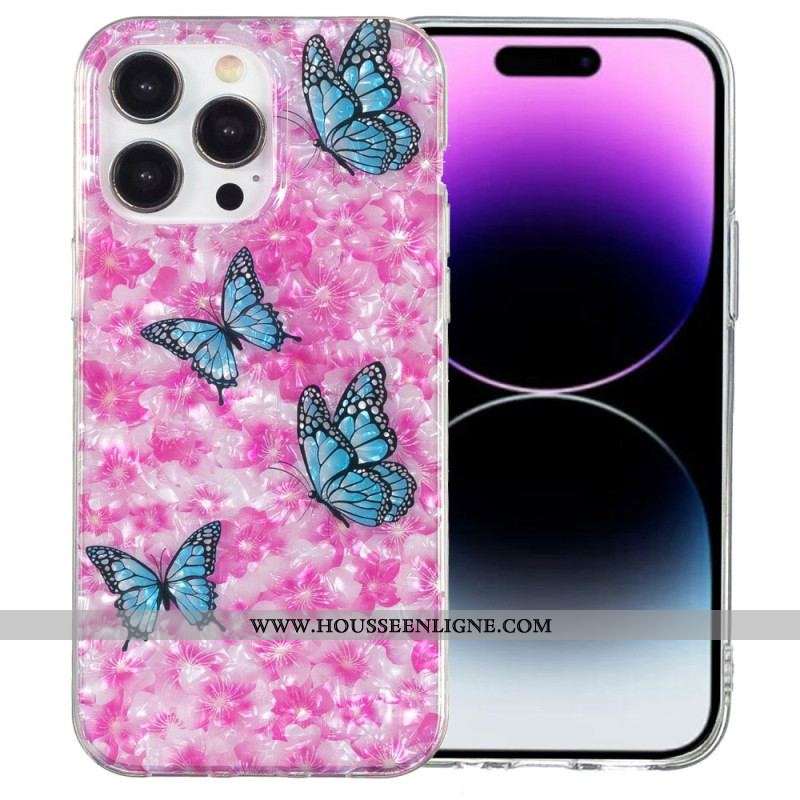 Housse iPhone 15 Plus Papillons sur Fond Bleu