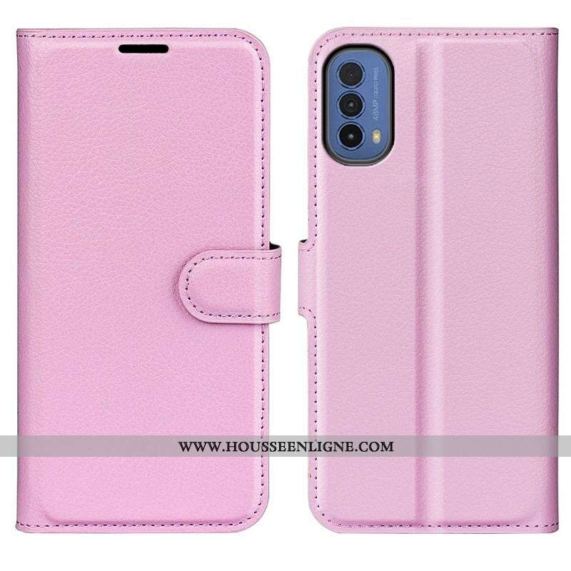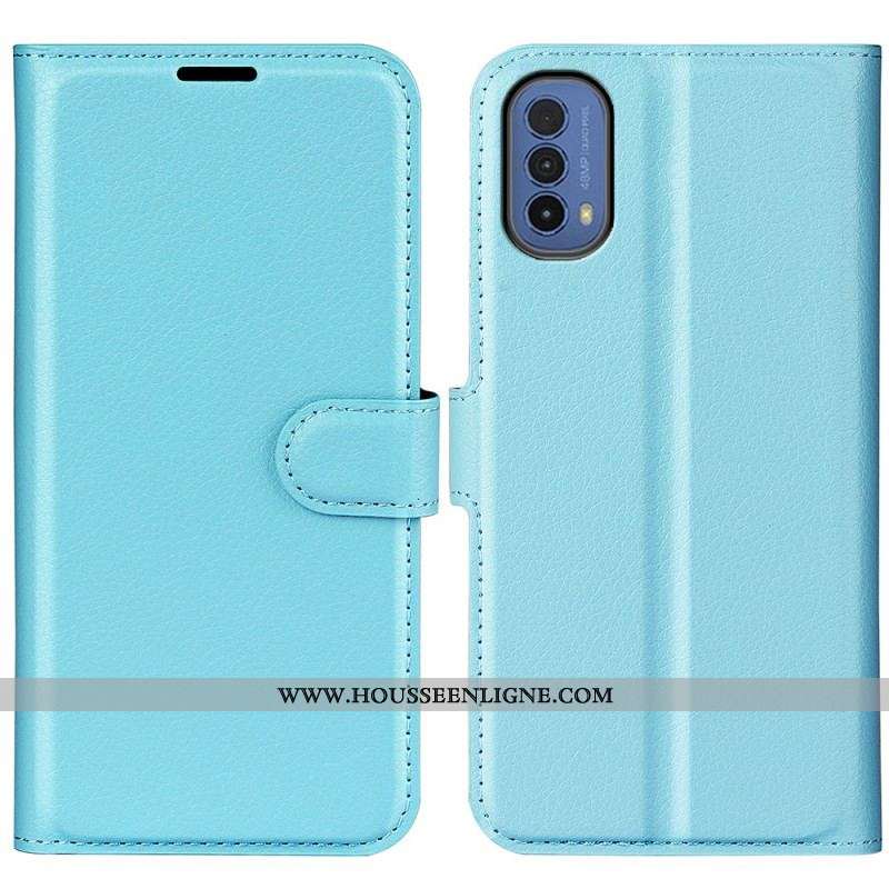 Flip Cover Moto E40 / E30 / E20 Cuir Litchi Fendu Élégance