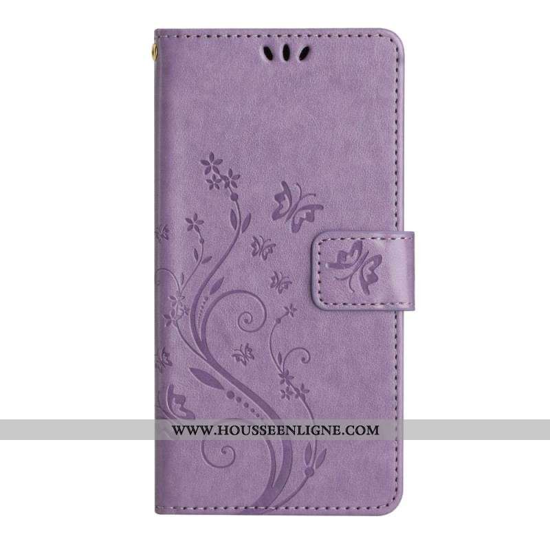 Housse Samsung Galaxy A54 5G Fleurs et Papillons à Lanière