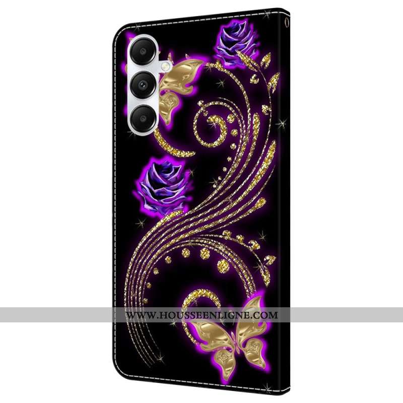 Housse Samsung Galaxy A55 5G Fleurs Violettes et Papillons