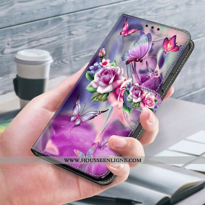 Housse Samsung Galaxy A55 5G Papillons et Fleurs Violets