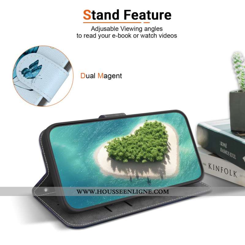 Housse Samsung Galaxy S24 5G Papillon Bleu et Fleurs